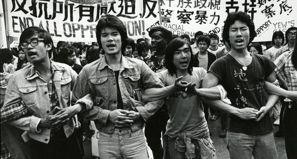 The photo is taken on May, 13 1975 by Corky Lee, a famous Chinatown photographer who recently passed. That day 3,000 people, mostly Chinese, took the streets for the first time to protest the NYPD’s beating and strip search of Peter Yew. Yew was a Chinese-American living in New York City's Chinatown when he witnessed police brutally beating a 15 year old for a traffic violation. He grew concerned and intervened, which led to his treatment. The New York Times reports that “demonstration that had young students protesting side‐by‐side with their parents and grandparents, chanting together in Chinese.”